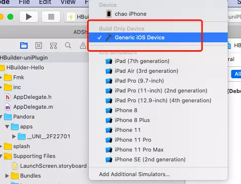 使用xcode11及以上版本打开工程文件iOSSDKDemo/HBuilder-uniPluginDemo/HBuilder-uniPlugin.xcodeproj