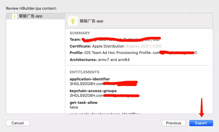 点击Export按钮,选择导出的文件夹路径导出安装文件。